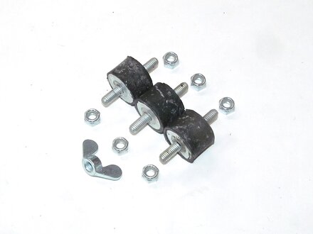 Fix that rattling air cleaner housing now. Kit includes 3 high quality rubber shock mounts, one large size (easy on the hands) wing nut for air filter cover, and 6 self locking nuts to install the rubber mounts. These attach to the T-shaped bracket this is mounted on the intake manifold of most 5 cylinder turbo diesel engines.