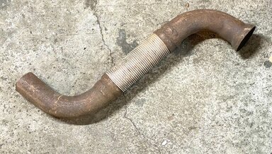 If you have a 617 turbo diesel you could have a broken flex down pipe. This is the pipe that comes out of the back of the engine. There is no good way to fix this. You will need to replace with new or good used.