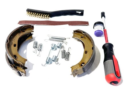 Emergency brake shoe maintenance is often neglected because the rear brake disc / rotor has to be removed to inspect and repair them. If the car has ever been driven a long distance with the emergency brake on, expect problems. The clips can break causing weird grinding and scraping noises in the rear brakes. They easily fall out of adjustment due to wear and need to be checked periodically. This kit combines both the brake shoes and springs with Kent's special tool easy install kit. Watch the video here to learn more.