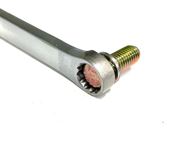 This kit comes with (4) brand new fan clutch bolts that we source and custom machine here in our shop. The metal is stronger than the originals, the wrench fits tighter, and the heads are taller for better grip. Very handy to have on hand when you are changing your water pump or fan clutch out! If you strip one or lose one, or have to bust one off because it is totally frozen, you can still finish up the job. We include our special wrench to remove and install the bolts, but you may need our special wrench to get the old ones off. The wrench is very long, and we custom-machine the box end to fit over the restricted space surrounding the bolts.